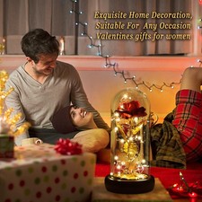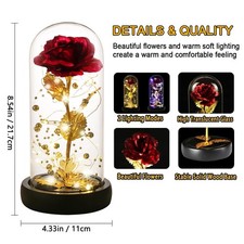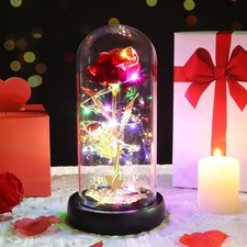 Valentines Rose Flower Gift for Her – Galaxy Glass Dome LED Light – Birthday Wom