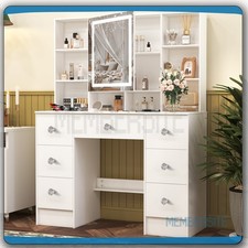 Vanity Desk With Smart LED Mirror Makeup Dressing Desk w/7 Drawers &Crystal Pull