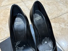 Versace Palazzo Medusa Head Black Leather Pumps Womens Heel EU 37