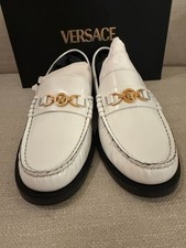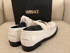 VERSACE Women’s Gold Medusa White Leather Loafers 7 1/2 US 1012123 IT NIB