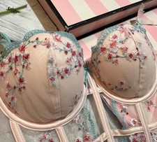 Victoria’s Secret Cherry Blossom Pink Floral Embroidered Bra Bustier Corset Set