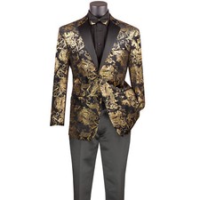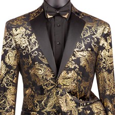VINCI Men’s Gold & Black Paisley Embossed Modern Fit Tuxedo Dinner Jacket NEW
