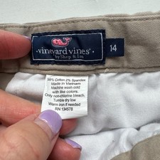Vineyard Vines Boys Sz 14 Adjustable Waist Khaki Tan Chino Shorts Cotton Spandex