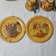 Vintage 1930-40 Walt Disney Ohio Art Tin Litho Mickey Mouse tea set 2 Mini bean