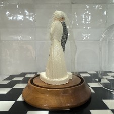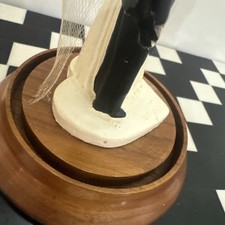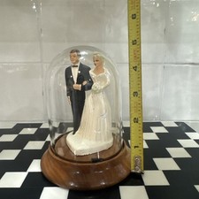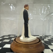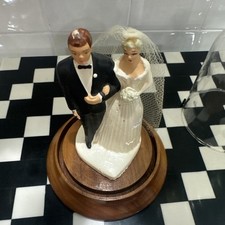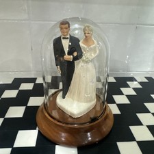 Vintage 1940’s/50’s Wedding Cake Topper Bride & Groom In Glass Dome Wood Base