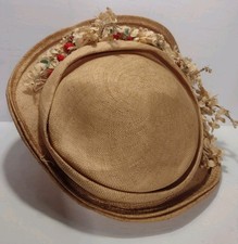 Vintage 1940s CR Original Richmond VA Straw Hat Linen Velvet Floral Trim