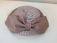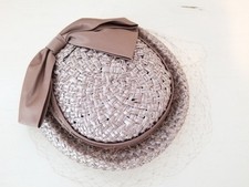 Vintage 1950’s Coco Cellophane Straw Hat w/ Blusher Veil & Large Satin Flat Bow