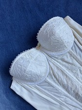 Vintage 1950s Embroidered Longline Corset Bustier 34A Bridal White Bustier