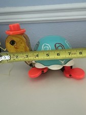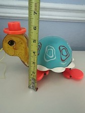 Vintage 1962 Fisher Price Tip Toe Turtle Pull Along Toy # 773 Music Bell Working