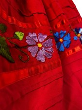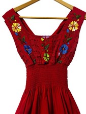 Vintage 1970s Mexican Peasant Dress Handmade Red Embroidered Womens Small