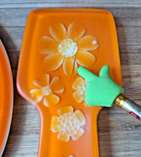 Vintage 1970’s Orange Lucite Flower Power Trivet and Spoon Rest. Sold as Set