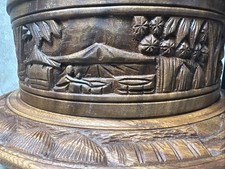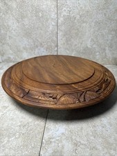Vintage 1970s Tiki Cake Stand / Lazy Susan Hand Carved Wood