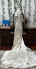 Vintage 40s Candlelight Liquid Satin Wedding Dress Ivory Beaded Train S/M