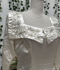 Be the first to review “Vintage 40s Candlelight Liquid Satin Wedding Dress Ivory Beaded Train S/M”