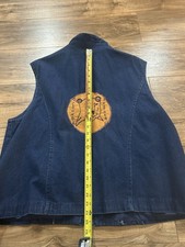 Vintage 60s 70s Denim Vest Sears Talon Zipper Folkart XL/XXL 23×24” True Vintage