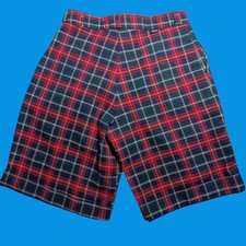 Vintage 70’s Levis Boys Shorts 10 23W Red & Blue Tartan Plaid Pleated Twill USA