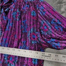 Vintage 80s Deborah Barry Top Womens M Purple Blue Striped Floral Striped Tie