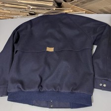 Vintage 80s Navy Blue Wool L XL Woolrich Jacket Coat USA Plaid Lining Bomber Men