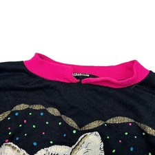 Vintage 90s Cat Heart Glitter Crewneck Sweatshirt Black Pink Toddler Medium