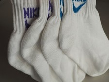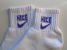 Vintage 90s Nike Quarter Ankle Socks White Turquoise Purple 2 pairs Unisex MED