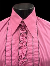 Vintage AfterSix Shirt Mens Fuchsia Ruffle Tuxedo 70s Disco Big Collar Easy Care