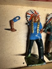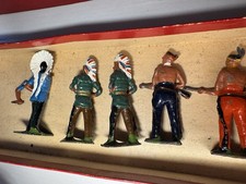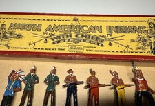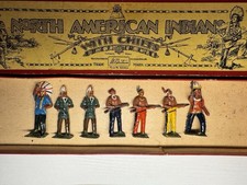 Vintage Antique 1930’s Britains Cast Lead Toy Native Americans Lot Of 7 Orig Box