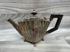 VINTAGE ART DECO SILVERPLATE FOOTED TEAPOT BAKELITE HANDLE CUBE SQUARE CUBIST
