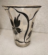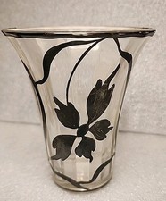Vintage Art Nouveau Sterling Silver Overlay Floral Pattern Glass Vase 5″