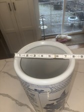 Vintage Blue /white Porcelain Umbrella Stand Birds Floral Landscape 18” Tall