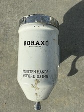 VINTAGE BORAXO SOAP DISPENSER WITH CHROME LID AND PLUNGER. EXCELLENT ITEM