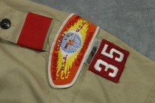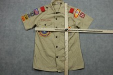 Vintage Boy Scouts Of America Shirt Youth 14 Beige Short Sleeve Uniform Patches