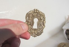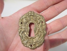 Vintage Brass Keyhole Cover Escutcheon Plate Old British Empire Crest Arms Lions