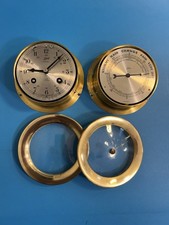 Vintage Brass Schatz West Germany 4 1/2” Ships Bell Clock & Barometer