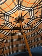 Vintage Burberry Nova Check Wood Shaft Umbrella with Wood Handle