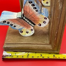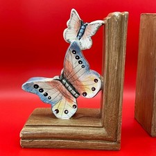 Vintage Butterfly Bookends Hand Painted Faux Wood Resin Set of 2 Boho Whimsical