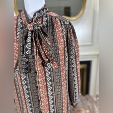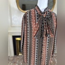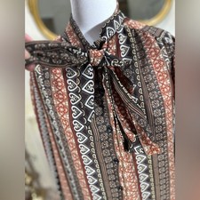 Vintage Catalina Plus 42 Blouse XL 16/18 Tie Neck Boho Retro Paisley Long Sleeve