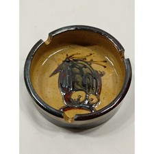 Vintage Ceramic Owl Ashtray Dish Small Trinket Holder Brown Glaze Hand Painted