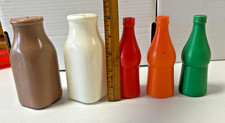 Vintage Children’s Plastic Chocolate Milk, Milk and 3 Soda Bottle Play Food Cont