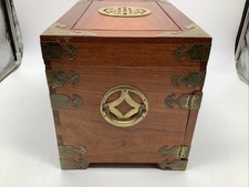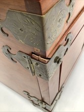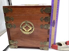 Vintage Chinese Camphor Chest Wood Brass Hinged Wood Jewelry Stash Trinket Box