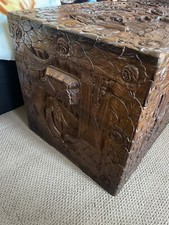 Vintage Chinese Carved Camphor Wood Hope Chest with Glass Cover 40x20x20