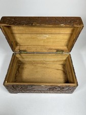 Vintage Chinese Hand Carved Camphor Wood Chest Jewelry Trinket Box (Defects)