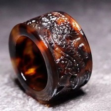 Vintage Chinese Style Turtle Shell Thumb Ring Carved Natural Blood Pattern Band