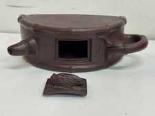 Vintage Chinese Yixing Pottery Teapot with Bamboo Arch & Beatle Dec.