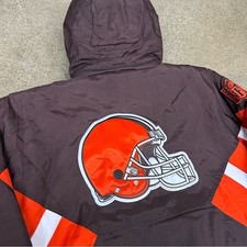 Vintage Cleveland Browns Jacket Mens Large Brown Hooded Puffer Starter Pocket