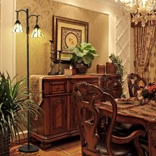 Vintage Dimmable Floor Lamp,2 Tiffany Lampshades Standing Lamp, Rustic Farmhouse