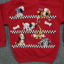 Vintage Dog Sweatshirt Youth Kids Small 6 Red Pullover Puppy Cartoon 90s