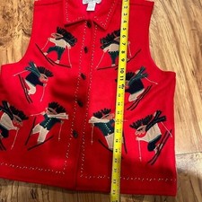 Vintage Dress Barn Red Wool Blend Moose Ski Vest Size L Christmas Lodge