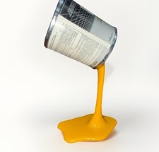 Vintage DuPont ChromaBase Spilled Paint Can Counter Display Bank Yellow Paint
