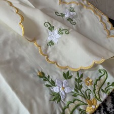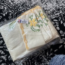 Be the first to review “Vintage Embroidered Floral 88” Round Table Cloth And 8 Napkins Set New Old Stock”