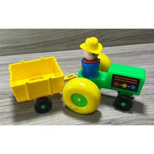 Vintage Fisher Price Little People Tractor and Trailer Set Green Yellow Toy